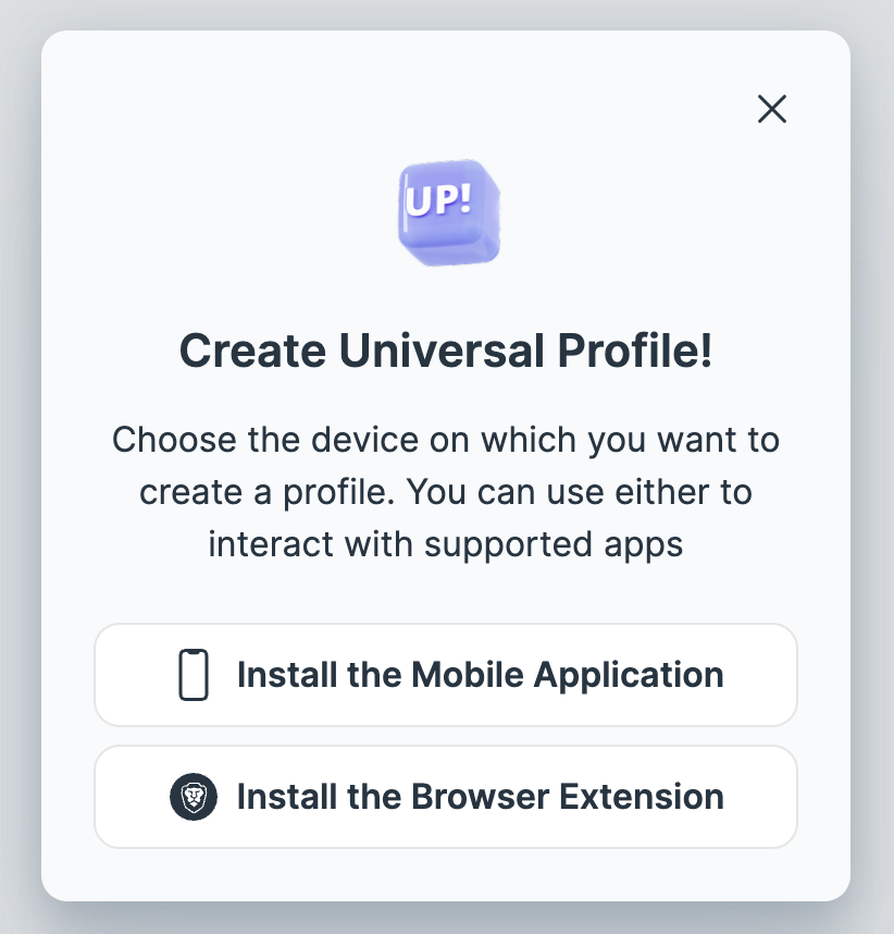 | UP Mobile | WalletConnect (deep link on mobile, QR code on desktop) |